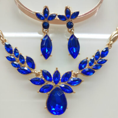 Peacock Crystal Trang sức Hàn Quốc Vòng cổ giọt nước Đá quý Bộ vòng cổ ba mảnh rỗng
