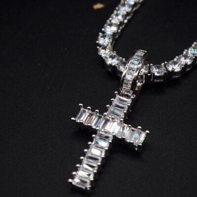 Hàng Mới Về Thang Đính Đá Cubic Zirconia Chéo Hip Hop Amazon AliExpress Phong Cách Nổ HIPHOP Trang Sức Nam Vòng Cổ