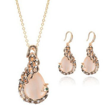 Xuyên biên giới dành riêng cho châu Âu và Hoa Kỳ trang sức mới vòng cổ giọt nước cổ điển bông tai hai mảnh bộ kim cương con công opal bộ