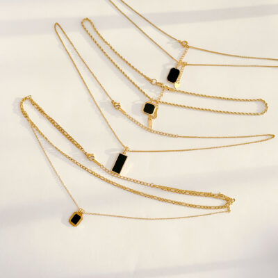 Vòng cổ thiết kế lạnh kiểu dáng cổ điển mã não đen hình vuông hai lớp vỏ đen nữ phong cách cổ điển Hàn Quốc