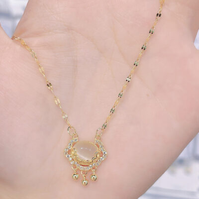 Như Ý Khóa Vòng Cổ Thỏ Ánh Sáng Nữ Sang Trọng Thiết Kế Hốc Vòng Cổ Đá Opal Năm Bản Địa Bình An Khóa Xương Đòn Dây Chuyền Xu Hướng