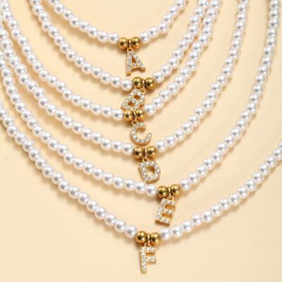 Xuyên Biên Giới Độc Quyền Cá Tính Nhỏ Tươi 26 Chữ Cái Mặt Dây Chuyền Vòng Cổ Ngọc Trai Đính Đá Zircon Chữ Cái Tiếng Anh AZ Xương Đòn Dây Chuyền Nữ
