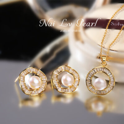 Nhà máy trực tiếp bán vòng cổ ngọc trai vòng tròn đồng tâm nước ngọt tự nhiên ngọc trai thật Đồng mạ vàng bảo quản màu của Mỹ khảm zircon
