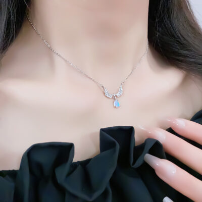 Nước Mắt Thiên Thần Đá Mặt Trăng Mặt Dây Chuyền Vòng Cổ Ánh Sáng Sang Trọng Pháp Nhẹ Nhàng Thiết Kế Cánh Cá Tính Xương Đòn Dây Chuyền
