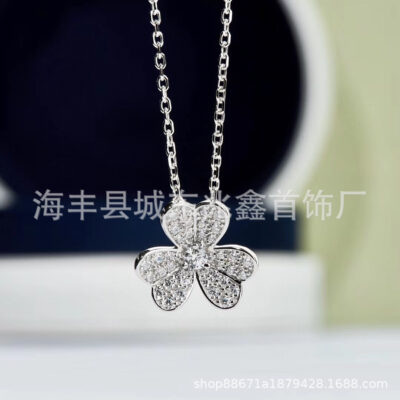Vòng cổ cỏ ba lá Nữ Kim cương đầy đủ Mặt dây chuyền hoa cơ thể trần Bạch kim 18k Chuỗi xương đòn kim cương đầy đủ Nhà máy cung cấp trực tiếp