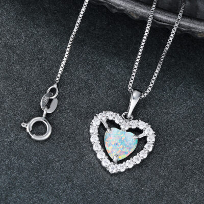 Thời trang xuyên biên giới Châu Âu và Châu Mỹ bán chạy nhất Vòng cổ bằng đá opal hình trái tim bạch kim Mặt dây chuyền trái tim bằng kim cương trắng Chuỗi xương đòn Trang trí đơn giản và đa năng