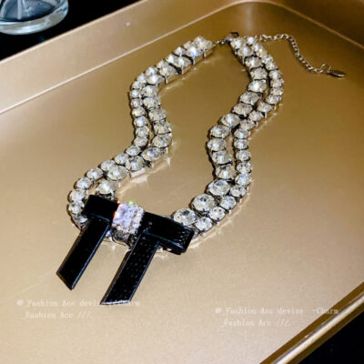 Kim Cương Zircon Nơ Da Vòng Cổ 2 Lớp Thời Trang Niche Light Vòng Cổ Sang Trọng Khí Chất Trang Sức Cao Cấp Bán Buôn