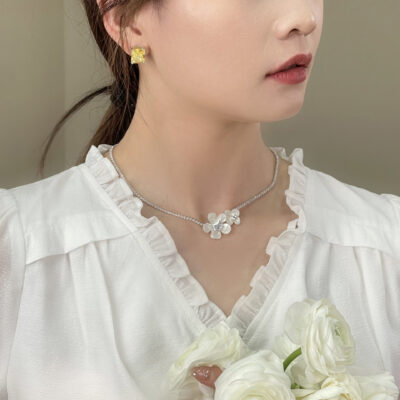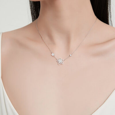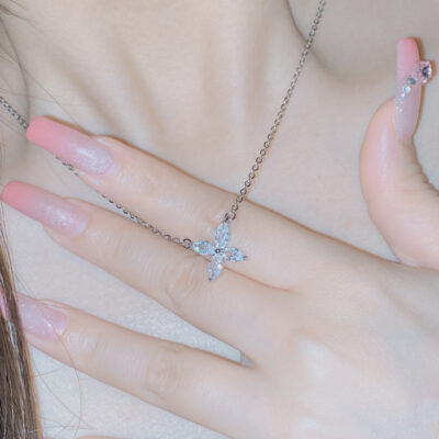 Vòng cổ hoa cho nữ Dây chuyền hoa xương đòn nhẹ sang trọng sang trọng Tính khí thép titan Khảm siêu nhỏ Dây chuyền hoa nhỏ kim cương đầy đủ Hợp thời trang