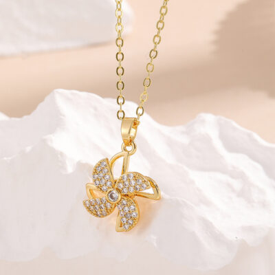 Đồng Zircon Micro Dát Vàng Thật 18K Xoay Giải Nén Vòng Cổ Lưới Đỏ Phong Cách Thích Hợp Thiết Kế Mặt Dây Chuyền Vòng Cổ Cao Cấp