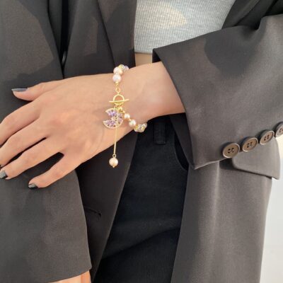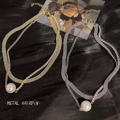 Ngọc trai tình yêu retro mới của Xiaohongshu với vòng cổ đôi cc kim cương ánh sáng sang trọng nhỏ hương thơm nổi tiếng vòng cổ xương đòn siêu cổ tích