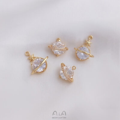 Giữ màu vàng 14K đính đá zircon hành tinh mặt dây chuyền trang sức handmade charm tự làm vòng tay bông tai vòng cổ xương đòn dây chuyền mặt dây chuyền