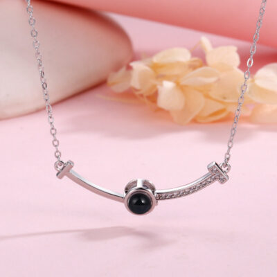 Xuyên biên giới cô he sản phẩm mới 100 ngôn ngữ chiếu nano bạc S925 mặt cười hai màu dây chuyền nữ đính đá zircon dây chuyền xương đòn