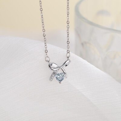 Bạc S925 Nơ Vòng Cổ Nữ Mùa Hè Ánh Sáng Sang Trọng Thích Hợp Thiết Kế Người Yêu Thắt Nút Hình Trái Tim Opal Mặt Dây Chuyền Xương Đòn Dây Chuyền