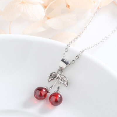 Phiên Bản Hàn Quốc Bạc S925 Mặt Dây Chuyền Anh Đào Garnet Đỏ Mori Vòng Cổ Anh Đào Ngọt Ngào Và Dễ Thương Cho Bạn Gái Quà Tặng