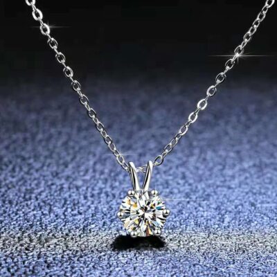 Vòng cổ Moissanite nữ cao cấp cảm giác kim cương đơn 6 móng vuốt mặt dây chuyền xương đòn chuỗi trang sức bạc quà tặng Douyin sống ngoại thương tại chỗ