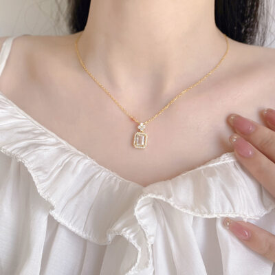 Thời Trang Vòng Mới Mặt Dây Chuyền Nữ Nhẹ Sang Trọng Thanh Lịch Micro Dát Zircon Hình Học Vòng Cổ Xương Đòn Dây Chuyền Bán Buôn