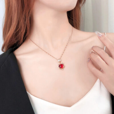 [Thép titan] ánh sáng sang trọng khí chất vàng thật vòng cổ zircon trái tim tuyệt đẹp cho nữ chuỗi xương đòn màu đỏ phù hợp với dây chuyền thép titan
