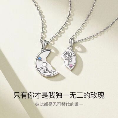 Hoàng Tử Bé Và Hoa Hồng Cặp Đôi Vòng Cổ Thích Hợp Sang Trọng Epoxy Khảm Chuỗi Xương Đòn Quà Tặng Sinh Nhật Cho Bạn Gái