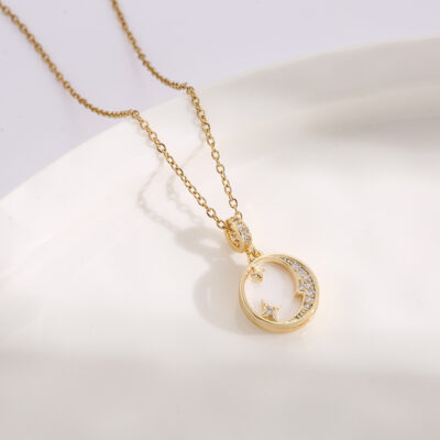Mingcheng AliExpress Mặt Trăng Vòng Cổ Đính Đá Zircon Châu Âu và Châu Mỹ thời trang hợp thời trang nữ retro hoa hồng vàng vòng cổ wishAmazon