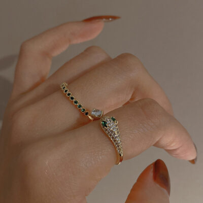 Vàng thật mạ điện zircon ngọc lục bảo con rắn nhỏ mở vòng cá tính đơn giản vòng thích hợp trang sức cao cấp bán buôn