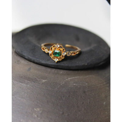 Vintage Thời Trung Cổ Cung Đình Phong Cách Ngọc Lục Bảo Khảm Đá Zircon Nhẫn Đồng Mạ Vàng Thật Chỉ Số Nhẫn Nữ 161