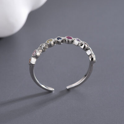 Châu Âu và Mỹ không đều hình học mở nhẫn bạc 925 tính khí nhẫn bạch kim màu kim cương full set nhẫn nữ