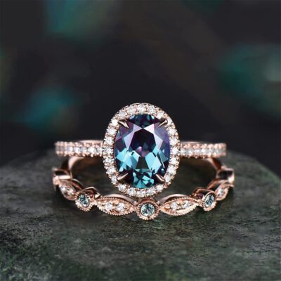 Châu Âu và Châu Mỹ trang sức mới xuyên biên giới bầu không khí thời trang hình bầu dục nhẫn kim cương nữ ba mảnh ngọc lục bảo