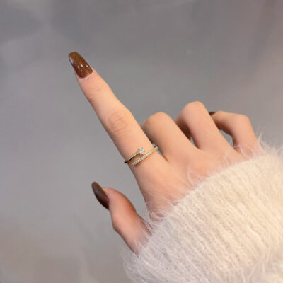 Con gái nhà giàu không đều kim cương đầy đủ zircon Sao Thổ Nhẫn nữ cảm giác cao cấp Âu Mỹ mở nhẫn vàng thật xếp chồng lên nhau