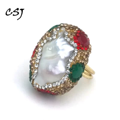 CSJ Đính Kim Cương Bằng Tay Bọc Ruby Và Ngọc Lục Bảo Ngọc Trai Nước Ngọt Nhẫn Nữ Triều Đình Phong Cách Retro Trang Sức Quý Phái Và Thanh Lịch