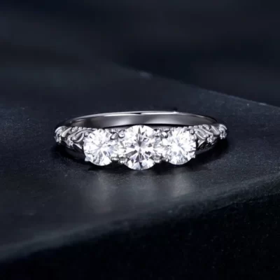 DEZO Cao Cấp 3CT / 5CT Nhẫn Đính Hôn Moissanite Cắt Tròn Dành Cho Nữ Ba Đá Nguyên Khối Bạc 925 VVS D Màu Giấy Chứng Nhận GRA