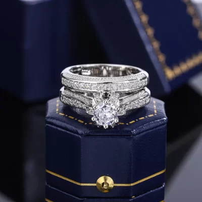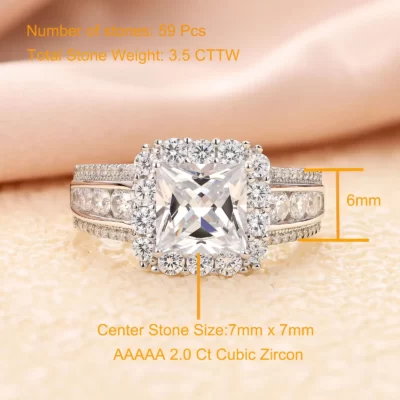 Pha Lê Chất Lượng Cao Đính Đá Zircon Nhẫn Cưới Bộ Thời Trang Đá Lớn Nhẫn Hứa hẹn Cô Dâu Đính Hôn S925 Nhẫn Bạc dành cho Nữ