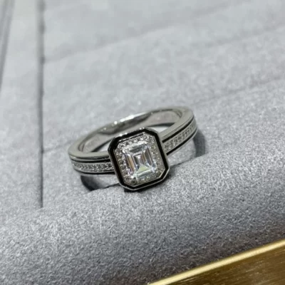 Nhẫn hình chữ nhật đính kim cương nguyên bản mở độc đáo có thể điều chỉnh trong suốt hình học thanh lịch cao cấp theo phong cách cổ điển trang sức nữ