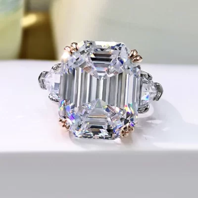10 Mm 4 Carat Cao Cấp Moissanite Nhẫn Đính Hôn Nữ D Màu VVS1 Phòng Nhẫn Đứng Kim Cương S925 Bạc Cưới Ban Nhạc