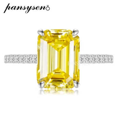 PANSYSEN Bạc 925 Ngọc Lục Bảo Cắt Mô Phỏng Moissanite Kim Cương Nhẫn Cưới Nữ Sang Trọng Đề Nghị Nhẫn Đính Hôn