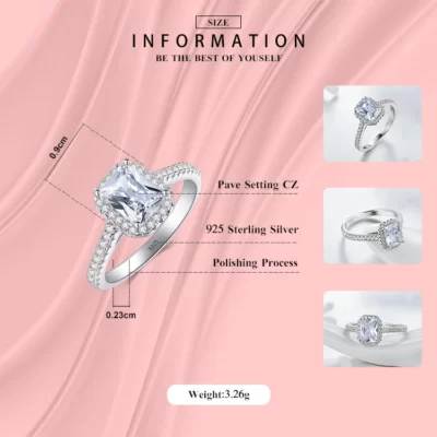 Đơn Giản Thanh Lịch Bạc 925 Chói Mắt Hình Chữ Nhật CZ Zircon Pha Lê Nhẫn Hứa Cưới Nhẫn Đính Hôn Dành Cho Nữ