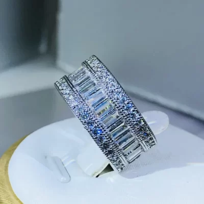 Lãng Mạn Tình Nhân Nhẫn Bạc 925 Vuông 8ct Phòng Sapphire Kim Cương Cz Cưới, Ban Nhạc Nhẫn Cho Nữ Trang Sức Dự Tiệc
