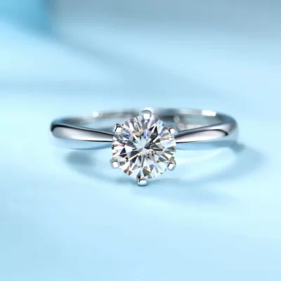 0.5ct 5mm 1ct 6.5mm Tròn Cắt D Màu VVS1 Moissanite Nhẫn Bạc 925 Kim Cương Thử Nghiệm Đạt Thời Trang Móng Vuốt Thiết Lập phụ nữ Bạn Gái