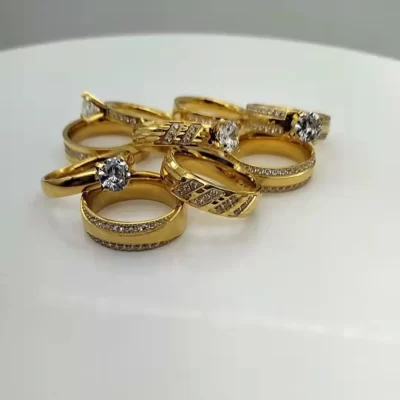 Nam Thời Trang Vàng 18K Màu Nhẫn Cao Cấp Độc Đoán Khắc Nhẫn Cưới Nhẫn Đính Hôn Trang Sức Dự Tiệc Kích Thước 6-13