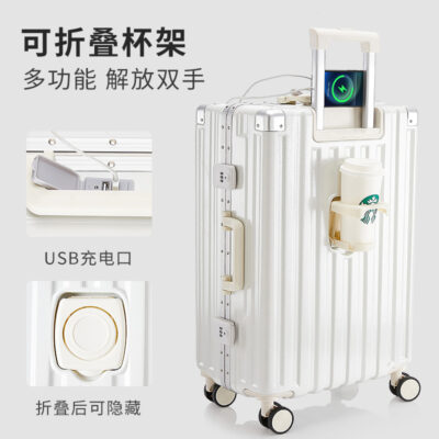 Vali hành lý khung nhôm 24 inch nữ đa năng có ngăn đựng cốc dung tích lớn vali bánh xe đa năng 28 inch nam