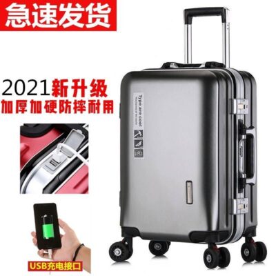 Vali khung nhôm có thể sạc lại Vali sinh viên nam và nữ Bánh xe đa năng mật khẩu hành lý Xe đẩy nam lên máy bay