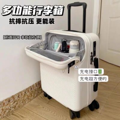 Vali mở phía trước đa chức năng giao diện sạc vali xe đẩy có bánh xe đa năng Vali lên máy bay 20 inch bán buôn