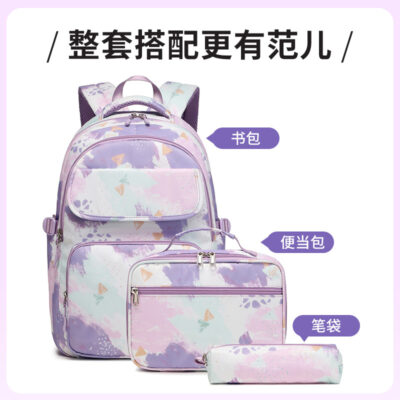 Ba lô ba mảnh mới xuyên biên giới cô gái in màu cặp học sinh tiểu học ba lô nhẹ chống nước thay mặt phân phối