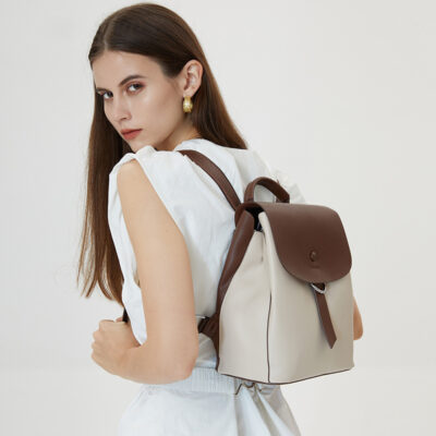 Ba lô da bò L*P dành cho nữ phong cách tối giản mới, ba lô phù hợp với tất cả các trận đấu, túi xách da mềm họa tiết vải thiều