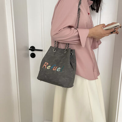 Ba lô dây rút dành cho nữ niche ins ba lô thêu chữ công suất lớn dây chuyền đa năng vai đơn Messenger túi xô