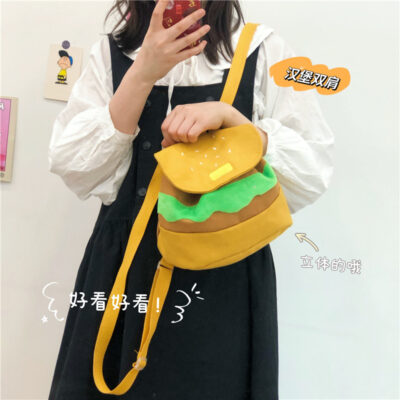 Ba lô bé gái mềm dễ thương hình bánh hamburger dễ thương