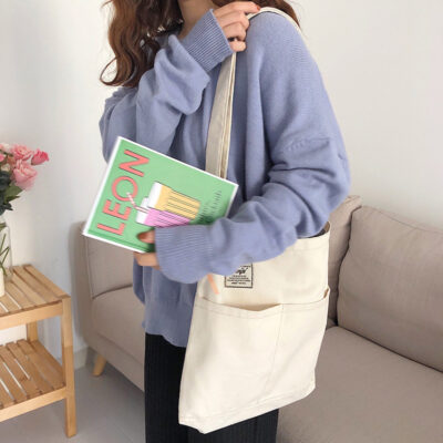 Người hâm mộ văn học túi lớn nữ phiên bản Hàn Quốc túi canvas lười gió sức chứa lớn túi đeo vai sinh viên đại học mới túi đi làm lớp