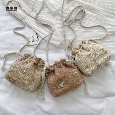 Túi mùa hè túi nữ mới túi messenger túi nhỏ phù hợp với tất cả ins túi đeo vai cỏ dệt túi xô nhỏ