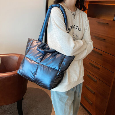 Túi xách nữ 2023 thời trang mới dành cho người đi làm túi đeo vai đơn sức chứa lớn phiên bản Hàn Quốc của túi xách bông kẻ sọc thích hợp