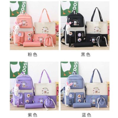Phiên bản Hàn Quốc của trường trung học cơ sở cặp học sinh nữ sức chứa lớn nhỏ tươi bộ năm món túi vải ba lô nữ đa chức năng
