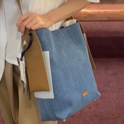 Songmont treo tai tote thiết kế trung bình phong cách denim và da đi lại vai túi đeo chéo túi xách nữ